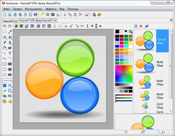 - Создавать значки стандартных и нестандартных размеров, с глубиной цвета до 32-bit True Color