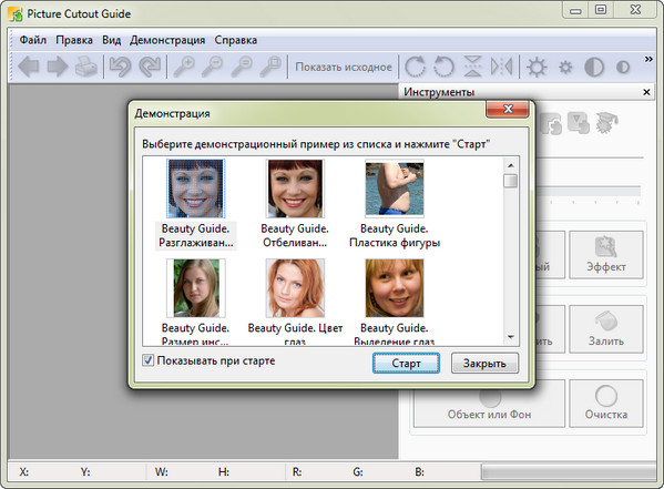 Picture Cutout Guide имеет удобный интерфейс, возможность вернуться на любое количество шагов назад. Все возможности программы показаны в демонстрационных примерах, что позволит вам быстро освоить программу и начать работу над вашими фотографиями.