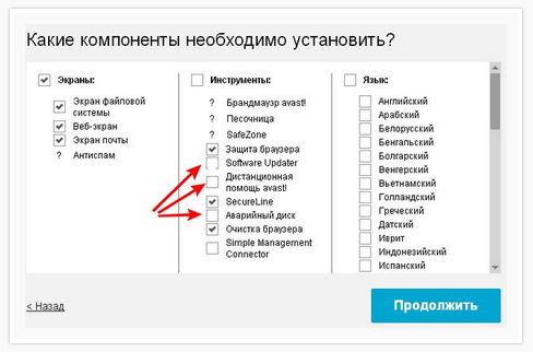 Основные компоненты avast! Free Antivirus