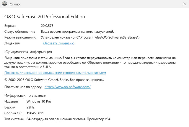 Скачать программу O&O SafeErase Professional 20.0.575 (31,17 МБ):