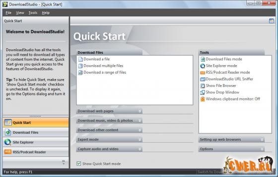 DownloadStudio - это универсальный комбайн для скачивания файлов и сайтов из Интернета. С ее помощью вы можете скачивать файлы в многопотоковом режиме, закачивать отдельные страницы или целые сайты для просмотра их в offline-режиме, а также осуществлять захват видеоизображения с экрана компьютера. Использование данной программы позволит вам отказаться от установки на компьютер программ, выполняющих все вышеперечисленные функции раздельно.