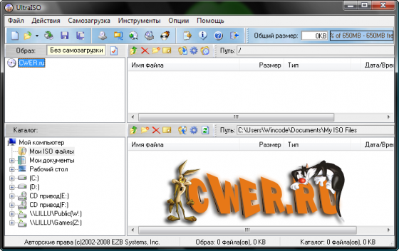UltraISO - программа для работы с образами дисков в формате *.iso. Она позволяет редактировать содержимое CD-образа, извлекать и запускать имеющиеся на нем файлы. Программа делает ISO файл с CD-ROMа или жесткого диска. Ultra ISO работает не только с файлами в формате ISO, но и с образами, созданными в таких популярных программах, как Alcohol 120%, Nero, NTI CD/DVD Maker, Virtual CD, Clone Cd, BlindWrite и др. Ultra ISO может работать в паре с Nero Burning Rom и использовать движок этой программы для записи дисков.