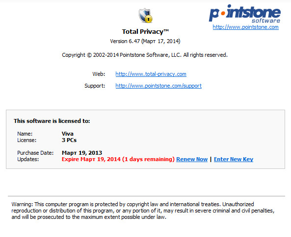 Скачать программу Pointstone Total Privacy 6.47.310 Final (4,59 МБ):