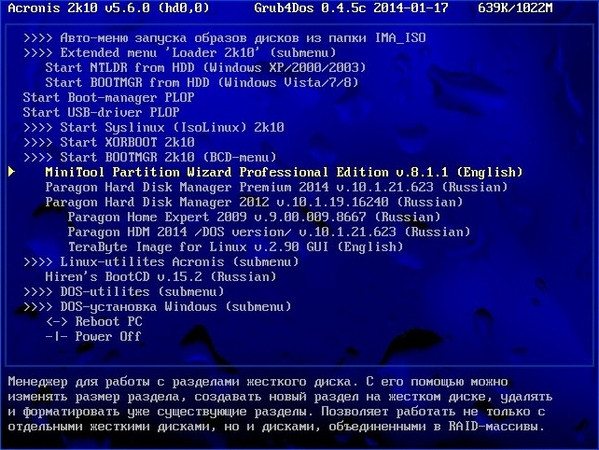 - Hiren's BootCD - потрясающе грамотно и профессионально собранный, самый популярный загрузочный "все в одном" диск, необходимый буквально всем, включая системщиков и администраторов для ремонтно-восстановительных работ на компьютере.
