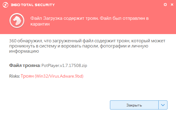 Антивирус уже несколько последних версий плеера сразу отправляет в карантин!