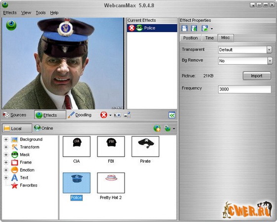 WebCamMax - продвинутая утилита для работы с веб-камерой. Программа, добавляющая изумительные видеоэффекты на все вебкамеры, даже без реальной камеры. Программу можно использовать по умолчанию в таких приложениях, как ICQ, AIM, MSN, Camfrog, Skype, Paltalk, Yahoo, ANYwebcam, Stickam. Можно настроить WebcamMax Full так, чтобы она начинала функционировать и вести трансляцию с камеры только в том случае, когда объектив зафиксирует движение.