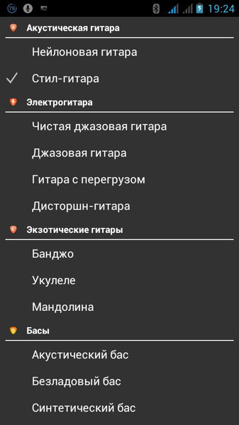 - Виртуальная клавиатура, гриф гитары/бас-гитары (возможность отображения для левшей).
