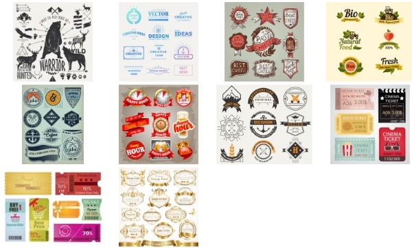 Скачать векторный клипарт "Этикетки и наклейки" (171 МБ):