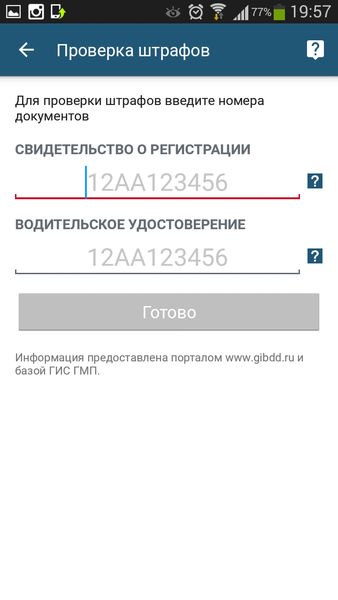 - Проверка неоплаченных штрафов ГИБДД.