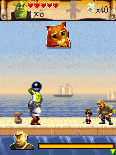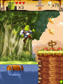 Официальное игра по фильму "Шрек 3".Два различных игровых режима: вы можете играть как за Шрека во время платформенных этапов, так и полетать вместе с Драконихой. 8 уровней, среди которых город Далекой-предалекой страны, Волшебный лес и Замок. Веселые сцены воссоздают искрометный юмор фильма. В игре есть множество секретным мест с бонусами, в которые можно попасть сломав некоторые стены.