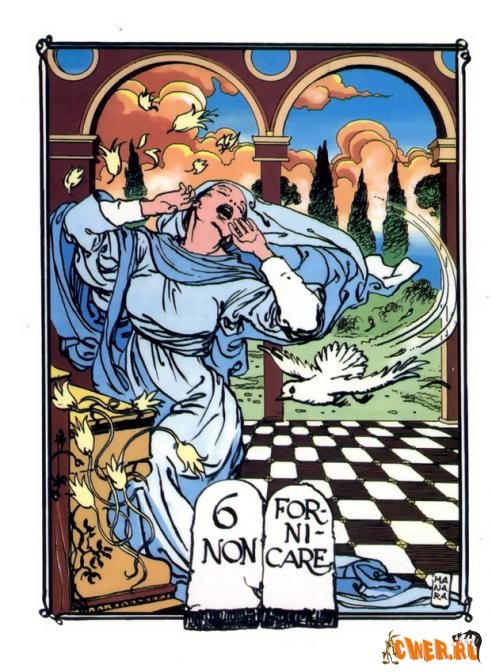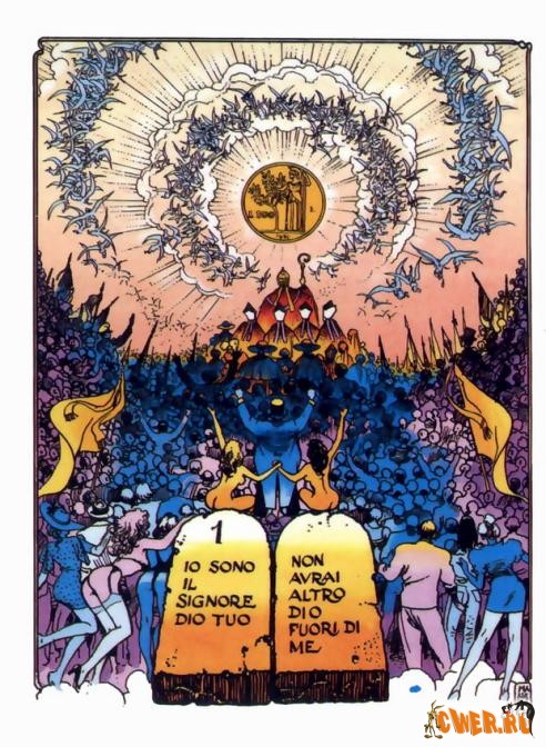 В результате наложения рисунков Манары на канонический текст получилась очень забавная сатира на современное общество. Даже как-то жаль, что заповедей слишком мало…