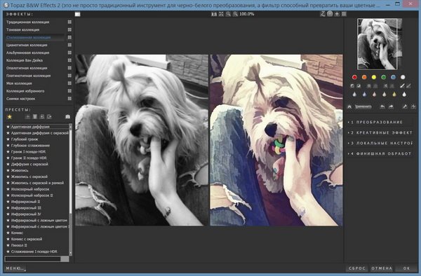 - Наличие творческих эффектов из популярных приложений Topaz;