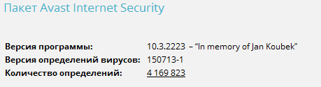Скачать программу Avast! Internet Security 2015 10.3.2223 (210,51 МБ):