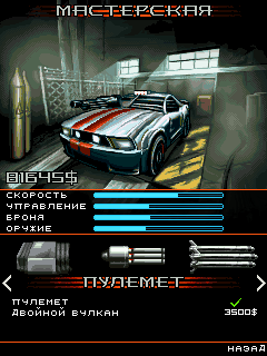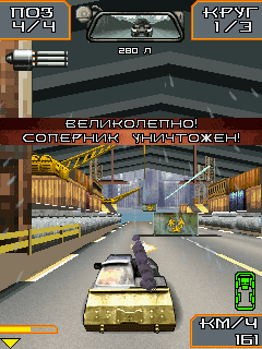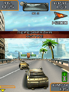 Дави на газ. Стреляй. Выживи. Победи в официальной мобильной игре по фильму «Смертельная гонка». Размеры экранов: 128х160, 176х204, 176х208, 176х220, 208х208, 240х320, 352х416.