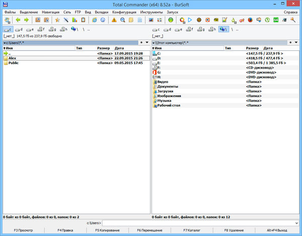 Total Commander – пожалуй, самый популярный файловый менеджер со всеми необходимыми для подобных программ функциями. Кроме всех инструментов, характерных для файловых менеджеров, Total Commander содержит очень удобные просмотрщики мультимедиа и графических файлов, распаковщики ZIP, ARJ, LZH, RAR, UC2, TAR, GZ, CAB, ACE и дополнительные dll для других архивных файлов; чрезвычайно удобный ftp-клиент: можно скачивать/закачивать файлы в несколько потоков, предусмотрена докачка, поддержка www-прокси при работе с ftp и есть даже такая функция как подключение к заданному ftp в заданное время. Никогда не помешают и такие функции как UUE/MIME/XXE кодирование/декодирование и разрезка/склейка длинных файлов, а также множество других возможностей, крайне необходимых для работы с файлами. Сборка от BurSoft включает в себя x86 и x64 версии Total Commander в одном инсталляторе на русском и английском языках и обладает рядом преимуществ: содержит оптимальный набор программ и плагинов, поддерживает интеграцию дополнительных программ, является портативной, не оставляет следов в системе и может быть установлена на любой съемный носитель, использует внутренние файловые ассоциации, позволяет "зарегистрировать" TC на свое имя.