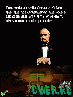 Игра для мобильных телефонов. Добро пожаловать в семью! Играйте в десять миниигр, основанных на Крестном отце. Каждая миниигра напомнит незабываемую сцену из кино. Размеры экранов: 128х160, 240х320.