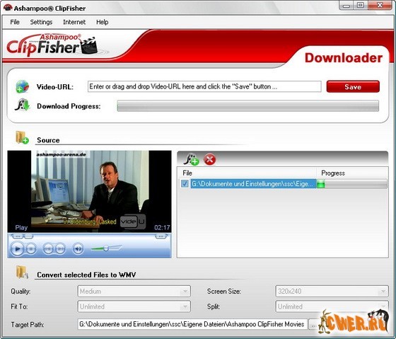 Ashampoo ClipFisher - это программа для загрузки, редактирования и конвертирования видео файлов, размещенных на популярных видео-хостингах: YouTube, VideU, MyVideo, ClipFish и GoogleVideo. Для работы с утилитой достаточно указать веб-адрес потокового вещания и программа сохранит выбранный фильм в форматах FLV или WMV. Кроме того, Ashampoo ClipFisher позволяет указать качество, с которым будет сохраняться видео, а также ограничить размер конечного файла, при достижении которого, запись будет прекращена. При необходимости средствами утилиты можно просмотреть загружаемый видео файл.