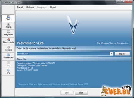 Это аналог всем известного nLite, для операционных систем Windows Vista, которая позволяет быстро и эффективно удалить из дистрибутива Windows Vista ненужные элементы.