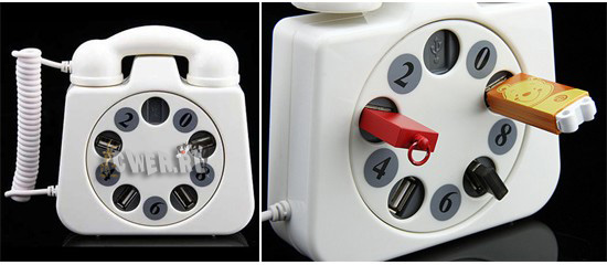 Еще один USB-хаб необычной внешности под названием USB Telephone 4-Port Hub реализован в виде классического телефона, устройства в который вставляются непосредственно в «дисковый набиратель номера».