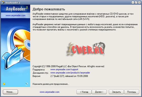 Часто необходимо считать данные с поврежденных "флешэк", дискет, поцарапанных DVD/CD-дисков, ненадежных сетей LAN (Wi-Fi). Обычными средствами это будет сделать, скорее всего, невозможно. Для таких случаев и существует программа AnyReader, которая выручит вас в подобной ситуации и легко прочитает, казалось бы, уже потерянную ценную информацию с любых носителей, которые доступны как буква диска в операционной системе Windows. Продолжение чтения (копирования) данных после возникающих ошибок или потери соединения в сети является уникальной возможностью программы AnyReader.