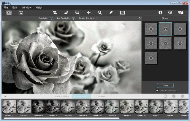 Dramatic Black & White - графический редактор, который превратит изображение в ретро-снимок и придаст вашим фотографиям винтажный шарм прошлых эпох. Приложение поможет вам подобрать яркость, контрастность, полноту оттенков серого и черного и сделать свои собственные черно-белые фотографии.