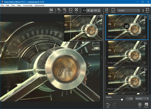 Bundled with hundreds of custom effects from soft and subtle to Lo-Fi and vintage styles, Texture Effects 2 give you full creative control. Start with a included effect, browse the Topaz Community for effects created by other users, or start from scratch. - Powerful Masking on every level.