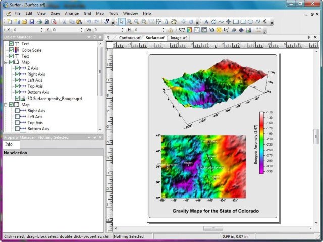 Surfer - программа для создания трехмерных карт, моделирования и анализа поверхностей, визуализации ландшафта, генерирования сетки и многого другого. Программа позволяет создавать реалистичные 3D карты с учетом освещенности и теней, использовать изображения местности в различных форматах, экспортировать созданные карты в различные графические форматы и печатать в цвете размером до 50 м по диагонали.
