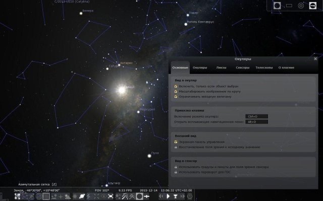 - Система плагинов добавляет показ искусственных спутников, симуляцию окуляра, управление телескопом и много другое