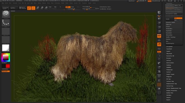 - DynaMesh – моделирование без необходимости создания предварительной сетки модели, а также применение логических операций над моделью с сохранением топологии.