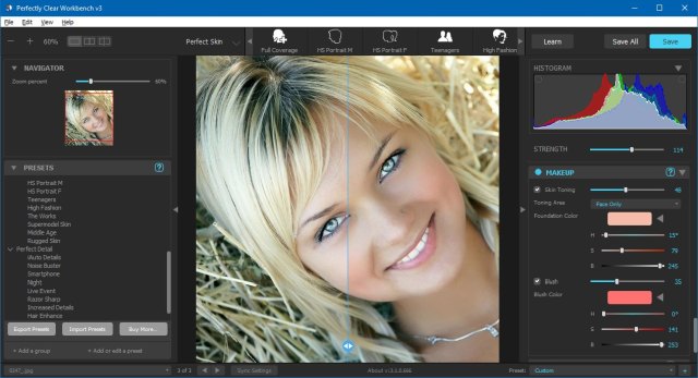 Perfectly Clear WorkBench — программа для обработки и коррекции фотографий до совершенного вида в автоматическом или ручном режиме. Используя запатентованные технологии обработки изображений, позволяет разрабатывать пресеты и выполнять визуальные эксперименты. Просто запустите программу и выбранные фотографии будут автоматически исправлены.