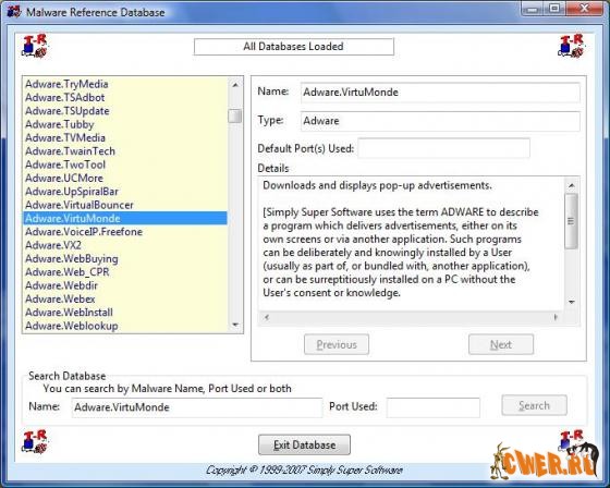 Полезная в хозяйстве вещь, ведь вполне может случиться так, что стандартный антивирус не сможет не то что удалить, но и обнаружить какой-нибудь особо изощренно изготовленный троян (в настощий момент программа способна обнаружить и удалить более семи тысяч троянов, и эта база данных постоянно пополняется). Проверка может осуществляться как при старте системы, так и в ручном режиме в любое время. Вы можете проверять только отдельные файлы, запуская программу из Проводника. Если Trojan Remover находит троян, он чинит поврежденные системные файлы и реестр, а также удаляет вредоносный движок. Дополнительную информацию о вирусах можно получить во встроенной базе данных, которая содержит информацию об огромном количестве троянов. Интерфейс программы прост и нагляден, все необходимые кнопки под рукой. Отдельно стоит отметить наличие базы данных на вирусы-трояны. В этой базе можно узнать краткую информацию по определённому вирусу. В последней версии добавлены новые эвристические методы определения вредоносных модулей.