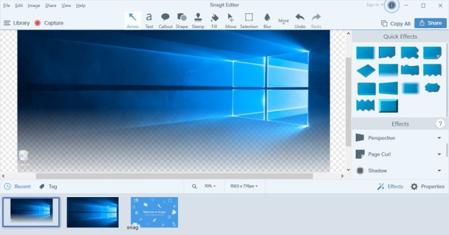 - Встроенный растровый редактор SnagIt Editor: наложение форматированного текста - цвет, шрифт, прозрачность, объемная тень; обработка изображения - вращение, обрезка, масштабирование; кисти, штампы, распылители, карандаши, линии, стрелки, геометрические фигуры, пипетка для захвата цветов, фигурное выделение областей изображения; более 50 уровней отмены действий.