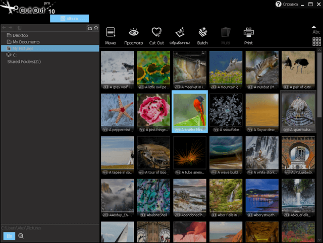 CutOut — графический редактор, предназначенный для маскирования и декомпозиции фото или попросту отделения объекта от фона. В программе можно просматривать, сортировать, обрабатывать изображения получаемые с различных цифровых устройств, создавать фотоальбомы, слайд-шоу. А также улучшать качество изображений, добавлять эффекты, надписи, рамки, устранять нежелательные объекты, избавиться от шума, дефектов кожи, эффекта «красных глаз».