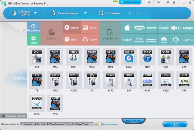 HD Video Converter Factory — мощный видеоконвертер, который поддерживает новейшую кодировку H265(HEVC), VP9 и другие HD-видео форматы. Она легко справится с многоканальными HD видео форматов M2TS, MKV, AVCHD, HDTV BDAV и MPEG-TS, HD записями видеокамеры, а также поддерживает более 300 видео и аудиокодеков.
