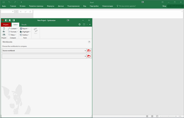 Synkronizer сравнивает любые две таблицы Excel. Просто введите имена файлов в понятный интерфейс, а затем отметьте, какие листы сравнивать. Вы можете сравнить два листа в одной книге или два листа в совершенно разных файлах. Вы получите быструю сводную информацию о различиях, которая поможет вам находить изменения, правки, удаления и отклонения.