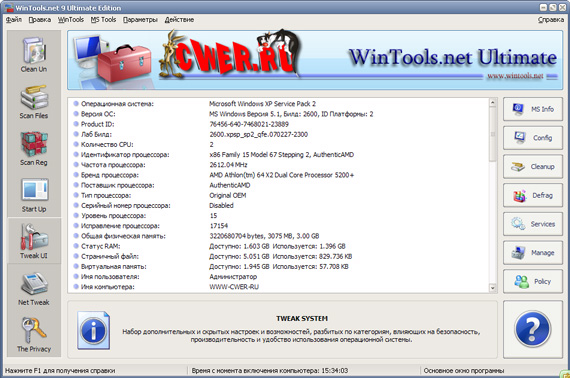 WinTools.net Ultimate – набор инструментов для оптимизации операционной системы Windows. В состав программы входят компоненты для полного удаления нежелательных программ и «мертвых» ссылок реестра, а также для контроля процессов, настройки системы, интернет-соединений и интерфейса. Кроме того, имеются утилиты для надежного хранения конфиденциальной информации. Работает на платформах Windows 2000, 2003, XP и Vista.