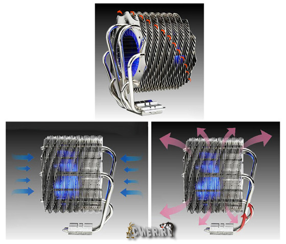 Примечательно и то, что радиатор новинки изготовлен по запатентованной технологии Spiral Fin Technology, благодаря которой на его наружной поверхности формируется спираль, что, по утверждениям разработчиков, значительно повышает общую производительность устройства. Ещё стоит отметить, что скорость вращения турбины может изменяться при помощи прилагающегося в комплекте регулятора в диапазоне от 1000 до 1600 оборотов в минуту, тогда как уровень создаваемого шума находится в пределах от 19 до 28 дБ. Что же касается габаритных размеров кулера, то они составляют 122 х 90 х 152 мм при весе 667 г.