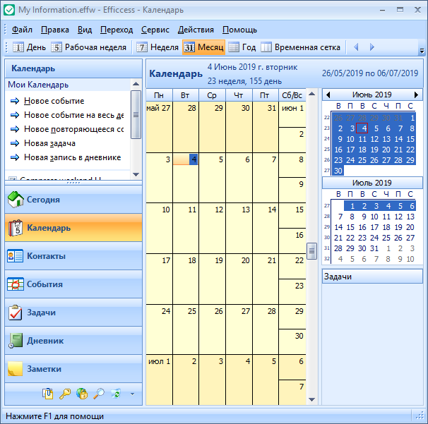 Efficient Efficcess — персональный информационный менеджер, который отслеживает назначенные встречи, а также содержит контакты, заметки, пароли и другие записи. Приложение несет в себе все стандартные функции органайзера, в том числе: повторяющиеся события, важные праздники, экспорт в HTML, управление задачами и напоминания. Входящий в состав продукта ежедневник содержит текстовый редактор с поддержкой rich text и изображений. Имеется встроенный менеджер паролей с генератором паролей. Поддерживается создание нескольких независимых профилей для каждого пользователя, а также выбор индивидуального интерфейса.