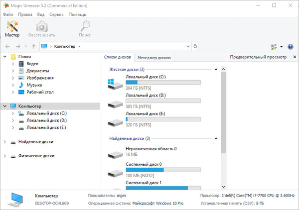 East Imperial Soft Magic Uneraser – программа для восстановления удаленных файлов в несколько простых шагов! Magic Uneraser является самым удобным и простым в использовании инструментом для восстановления данных. Программа восстанавливает любые типы файлов, поддерживает все типы носителей, включая жесткие диски, SSD диски, флэш-накопители и карты памяти. Поддерживая восстановление всех типов файлов, включая документы Office, цифровые фотографии, MP3 и ZIP-архивы, эта программа быстро и надежно вернет все ваши данные.