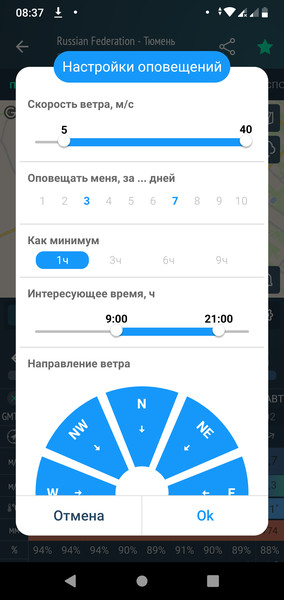- Оффлайн режим для просмотра прогноза без доступа к интернету.