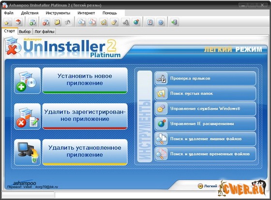Ashampoo UnInstaller Platinum - программы для деинсталляции, исправляющие и останавливающие замедление операционной системы Windows. Программа обеспечивает лучший и простой способ сохранить ваш компьютер свободным от программного мусора. Множество программ оставляет сотни записей в системном реестре, файлов, драйверов и системных служб даже после своего удаления. Данная программа поможет вам полностью удалить эти уже ненужные данные. Программа контролирует и записывает все программные установки и позволяет вам полностью их удалить так, чтобы не осталось следов. Также данная программа поставляется с дополнительными инструментами, которые помогут вам бороться с другими причинами замедления Windows. Программа обладает приятным и понятным пользовательским интерфейс с многоязычной поддержкой, включая поддержку русского языка.