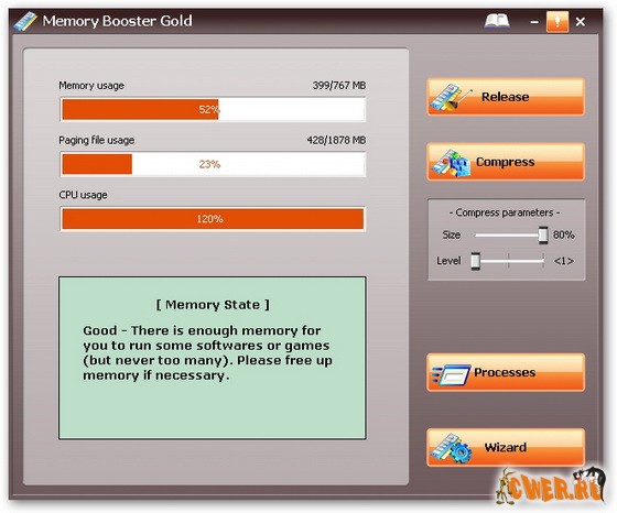Memory Booster Gold - легкая в использовании утилита для мониторинга и управления системной памятью компьютера. Позволяет уменьшать время загрузки и улучшать производительность приложений, запускаемых в вашей системе. Программа является средством для решения различных проблем с оперативной памятью компьютера. Это богатая возможностями и легкая в использовании программа. Оперативная память является одним из самых главных объектов в компьютере и, если производительность памяти становится низкой, то это может приводить к частым зависаниям системы или уменьшению скорости работы компьютера. Если вы хотите улучшить производительность вашего компьютера или хотите избавится от фрагментации, собранной в вашей системе, то данная программа будет вам очень полезна.