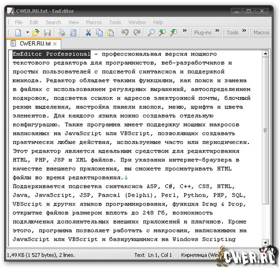Скачать Emurasoft EmEditor Professional 8.01 (2,97 МБ):