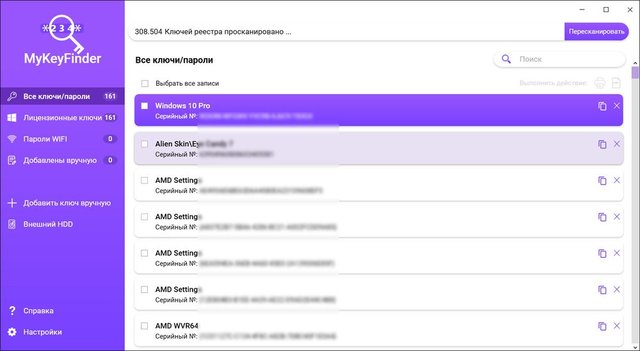 Ключи продукта могут храниться в разных местах и даже могут быть доступны несколько раз. MyKeyFinder фильтрует и удаляет все недействительные ключи и все повторяющиеся записи, так что вам не нужно об этом беспокоиться.