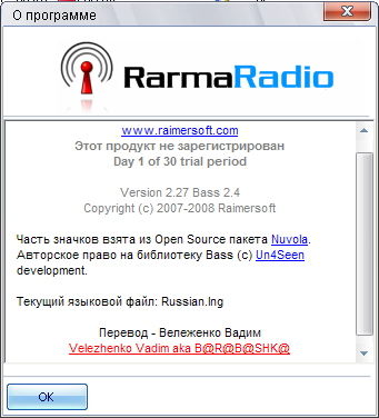 Это программа для прослушивания и записи интернет-радиостанций. Обладает большим набором возможностей, обеспечивая комфортное прослушивание радиостанций и удобную запись транслируемых данных. Программа содержит множество станций рассортированных на группы в зависимости от жанра музыки, битрейта, сети и региона, имеет функцию поиска станций, автоматически скачивает из Интернета информацию о проигрываемых песнях, включая альбомную графику, и поддерживает подключение плагинов медиаплеера Winamp. С помощью RarmaRadio можно слушая одну станцию, одновременно записывать несколько других интернет-радиостанций, осуществлять запись интернет-вещания по расписанию, а также автоматически начинать запись, в случае если заиграла определенная композиция. При сохранении полученных аудио файлов RarmaRadio добавляет в них теги.