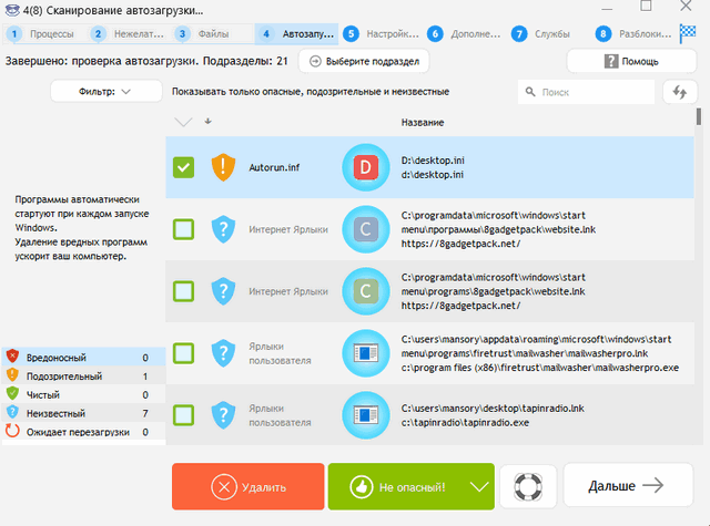 - UnHackMe включает в себя специально разработанные инструменты для обнаружения глубоко скрытых руткитов.