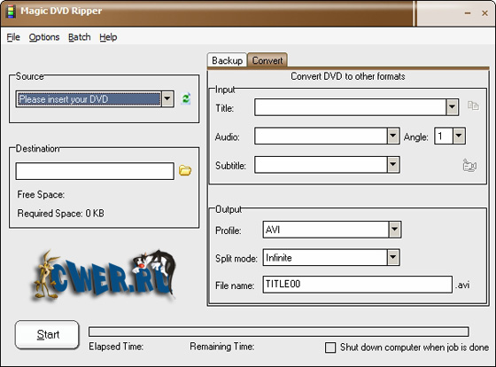 Magic DVD Ripper - простая программа для конвертирования DVD в популярные форматы SVCD, VCD или AVI. В процессе конвертирования DVD в выбранный формат вы можете установить приоритет процесса, если хотите параллельно выполнять другие действия на компьютере. Magic DVD Ripper позволяет определить главные необходимые настройки выходного и исходного файлов: субтитры, язык, формат выходного файла, его название, параметры разбивки. Вы можете выбрать один из предложенных размеров файла, в зависимости от того, на CD какого размера будет записан полученный файл.