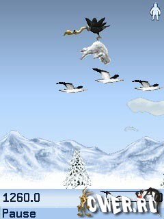 Снежный человек Йети решил положить конец подобной природной несправедливости по отношению к этим жителям Антарктиды. Он решил научить северных птичек искусству полета. Принципы обучения довольно просты: пингвины прыгают со скалы, а Йети в подходящий момент должен их шлепнуть. Размеры экранов: 128x128, 128x160, 176x208, 176x220, 240x320, 240x320 S40v3, 240x320 S60v3, 352x416, Nokia N95 240x320.