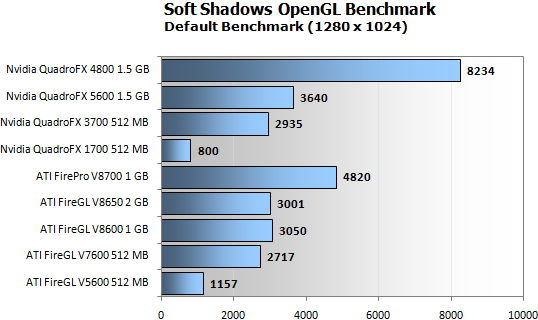 Также в тестировании принимали участие следующие устройства: NVIDIA Quadro FX 5600, Quadro FX 3700, Quadro FX 1700 и ATI FirePro V8700, FireGL V8650, FireGL V8600, FireGL V7600, FireGL V5600.