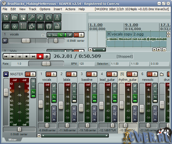REAPER - компактный аудиоредактор для создания, редактирования и записи многоканальных аудиотреков с возможностью обработки каждого трека по отдельности. REAPER позволяет применять во время обработки аудио множество эффектов, поддерживает технологии ASIO, Kernel Streaming, WaveOut и DirectSound воспроизведение и запись. Поддерживает работу с файлами в форматах WAV, OGG, MP3, MIDI (чтение) и WAV, MIDI (запись), управление уровнем громкости, изменение границ трека, допускает многоуровневый откат/повтор выполненных операций и многое другое.